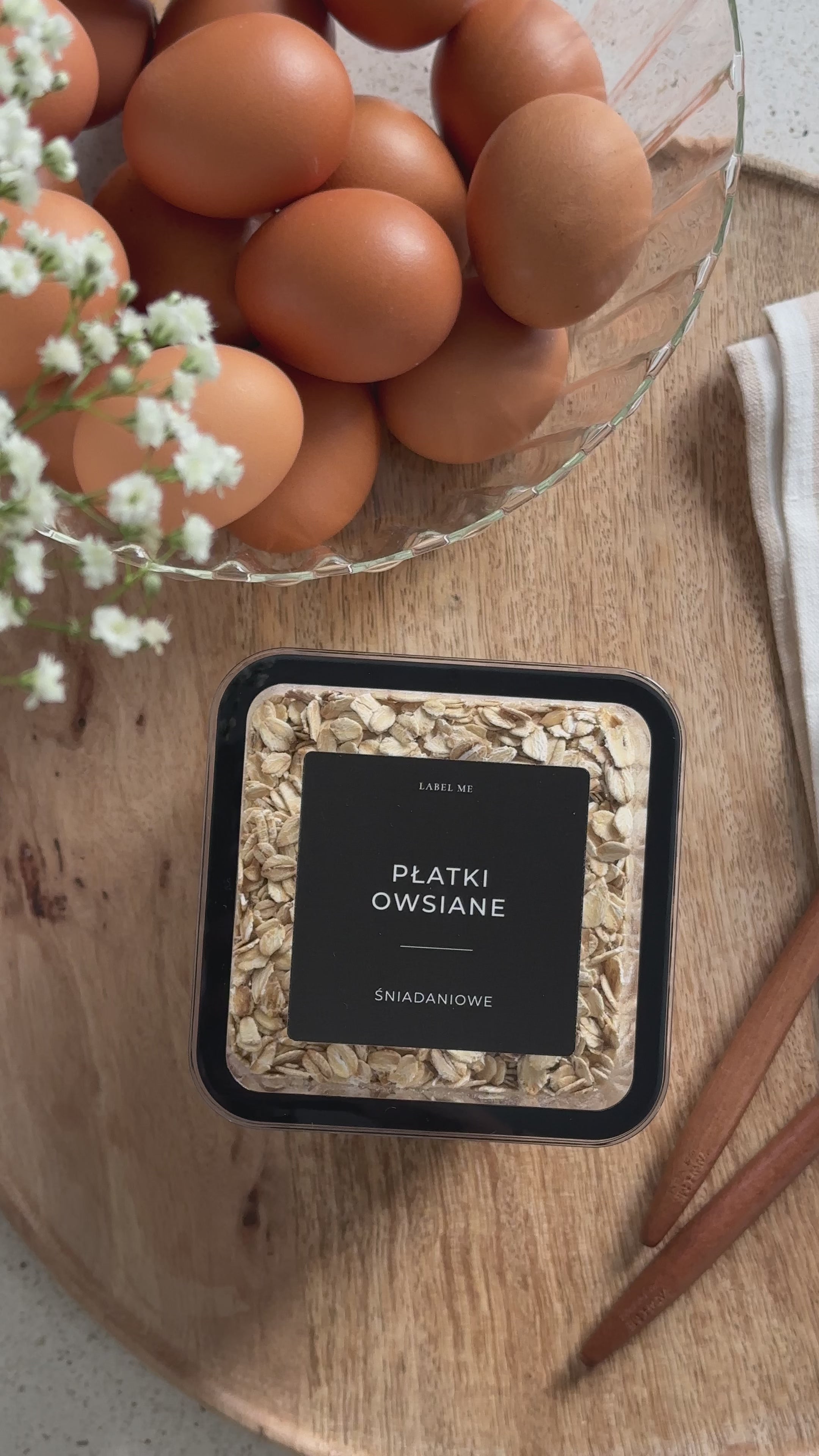 Minimalistyczne etykiety, wodoodporne, odporne na tłuszcz i zaplamienie.